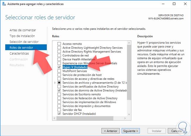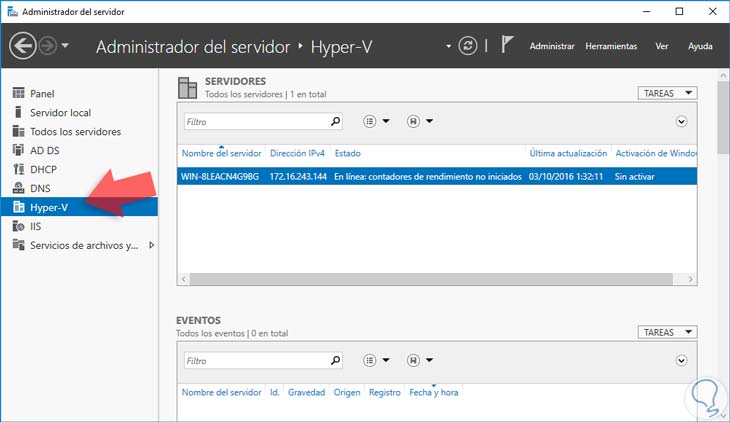 1. Instalar el rol de Hyper-V en Windows Server 2016
