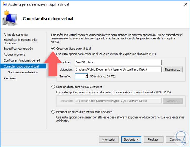 2. Crear máquina virtual CentOS 7 en Windows Server 2016