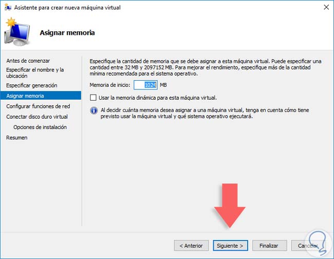 Una vez definamos el tipo de generación pulsamos Siguiente y procedemos a configurar la memoria RAM para la máquina virtual CentOS 7.