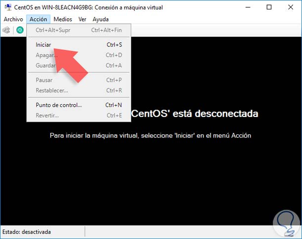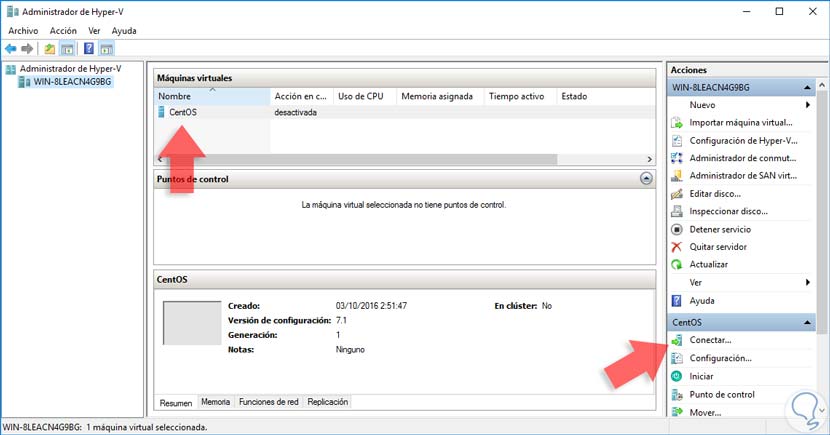 3. Validar máquina virtual CentOS 7 en Windows Server 2016