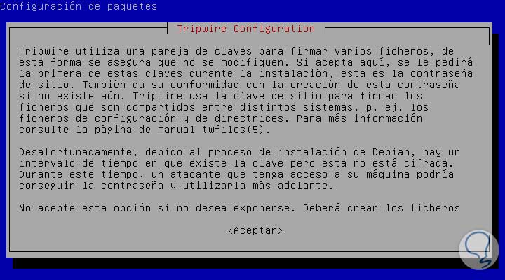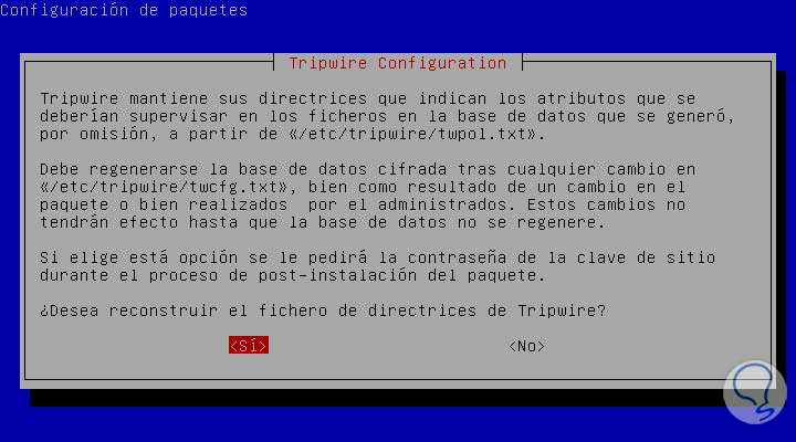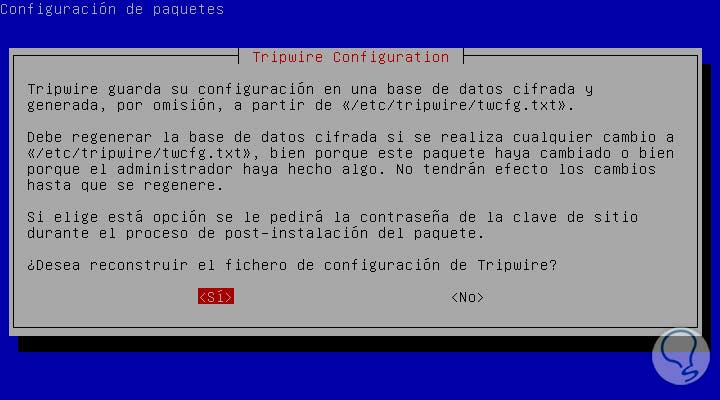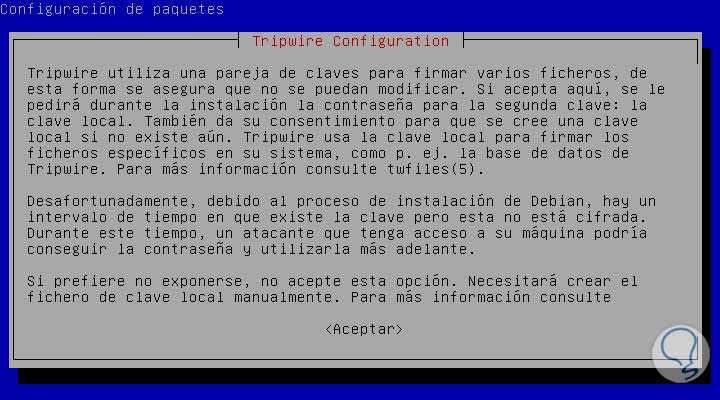 Una vez aceptado este mensaje se despliega la siguiente ventana donde debemos definir en qué momento crear las claves de TripWire.
