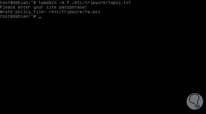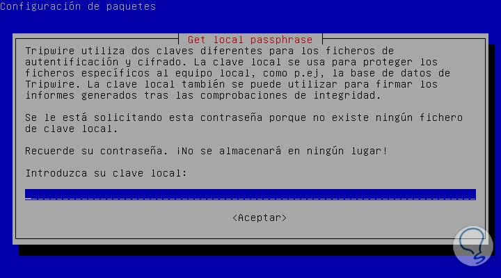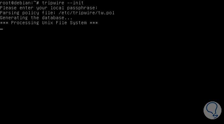 tripwire –initY debemos ingresar la contraseña local que hemos creado anteriormente.
