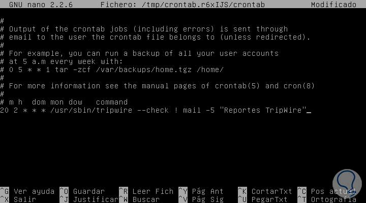 Para verificar los parámetros de la herramienta TripWire ingresaremos el siguiente comando: