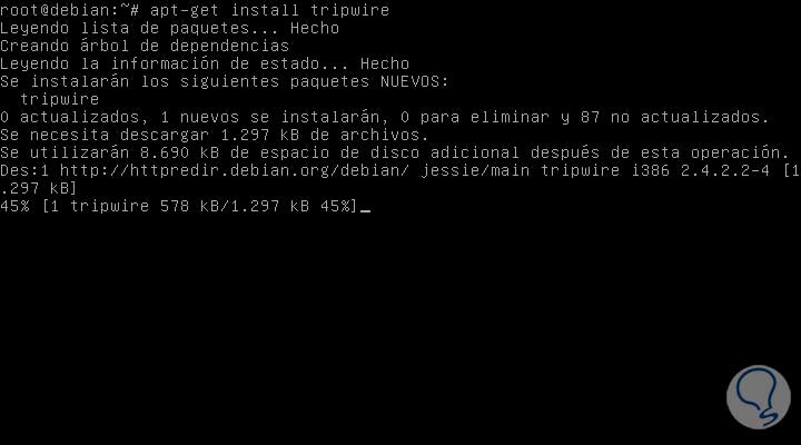 Una vez tengamos el sistema actualizado procedemos a ingresar el siguiente comando para la descarga e instalación de TripWire: