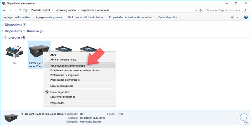 3. Eliminar cola de impresión Windows 10 con Panel de control