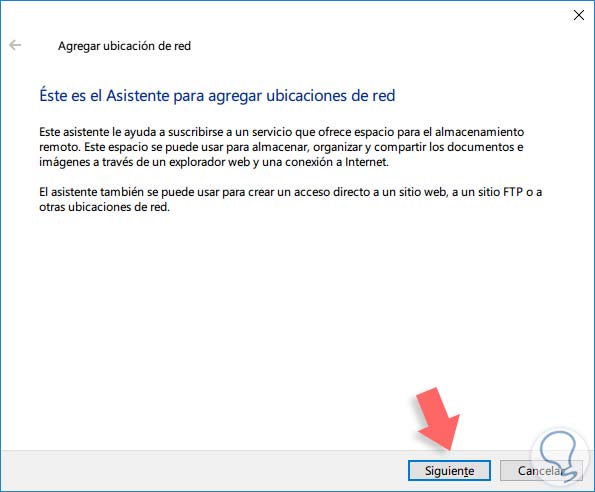 Pulsamos Siguiente y veremos la siguiente ventana donde seleccionamos la opción “Elegir una ubicación de red personalizada”