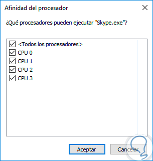 Selecciona los núcleos que quieres asignar a este proceso con los check y después pulsa en Aceptar.