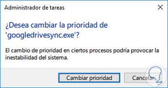 Una vez modifiquemos la prioridad veremos el siguiente mensaje. Si estamos seguros del cambio pulsamos el botón Cambiar prioridad.
