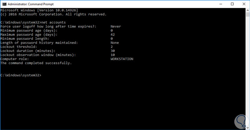 Podemos usar de nuevo el comando net accounts y ver los cambios que hemos aplicado.