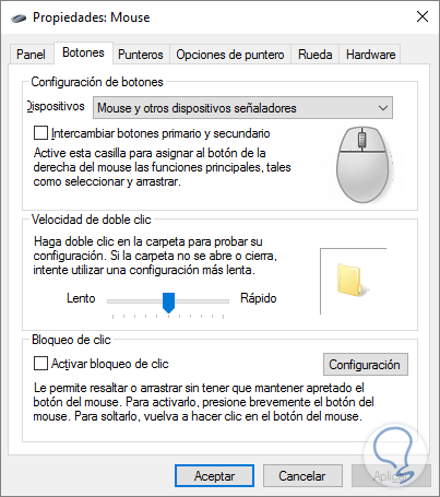 Una vez usemos alguna de estas alternativas veremos la siguiente ventana para proceder a modificar las propiedades del ratón.