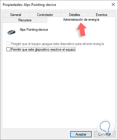 En esta ventana debemos desmarcar la casilla Permitir que este dispositivo reactive el equipo para evitar que nuestro mouse active el sistema operativo Windows en estado de hibernación.