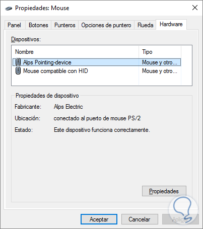 En esta ventana seleccionamos el mouse activo y pulsamos la opción Propiedades