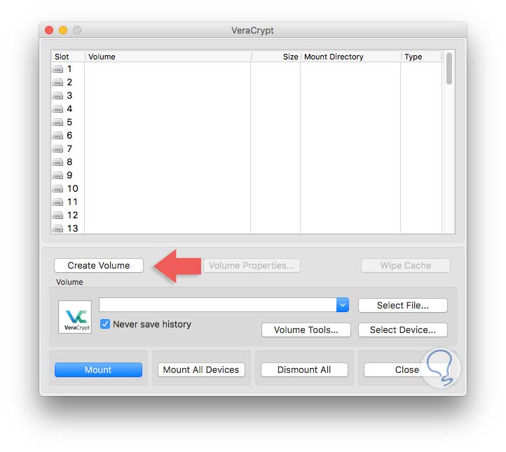 Allí debemos pulsar en la opción Create Volume para iniciar el proceso de encriptación