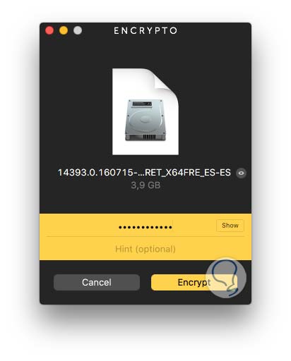 Notemos que podemos asignar una contraseña al archivo, agregar un indicio y finalmente pulsaremos el botón Encrypt para ejecutar el proceso de encriptación.