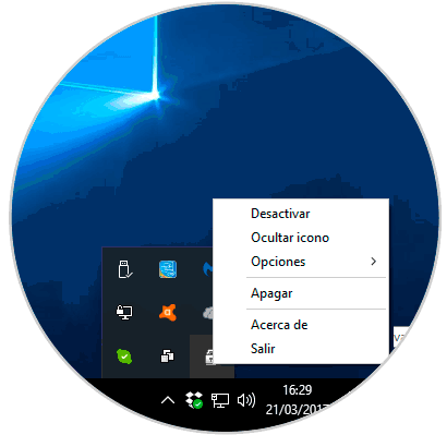 Al ejecutar la aplicación podremos ver su acceso en la barra de tarea en un icono en forma de candado: