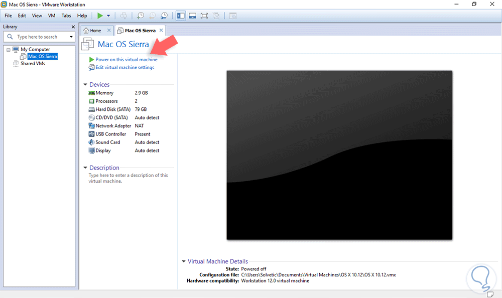 Una vez realizado este cambio en el archivo de configuración procedemos a iniciar el proceso de instalación del sistema operativo pulsando en la línea Power on this virtual machine