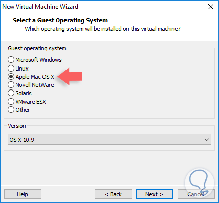Pulsamos Next y a continuación seleccionaremos la familia a la cual pertenece el sistema operativo, en este caso Apple Mac OS X