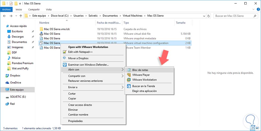 Daremos clic derecho sobre dicho archivo y seleccionamos la opción Abrir con y elegimos Bloc de notas