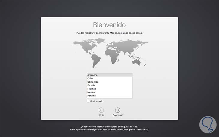 A partir de este punto realizaremos la instalación con los parámetros acostumbrados como ubicación geográfica, teclado, cuentas de usuarios, Siri, etc.
