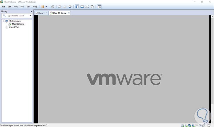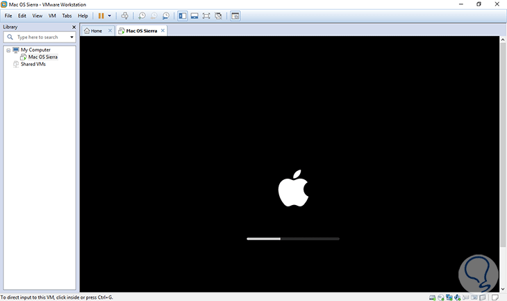 Veremos la interfaz de VMware y posteriormente el logo de Apple iniciando el proceso de instalación de macOS Sierra