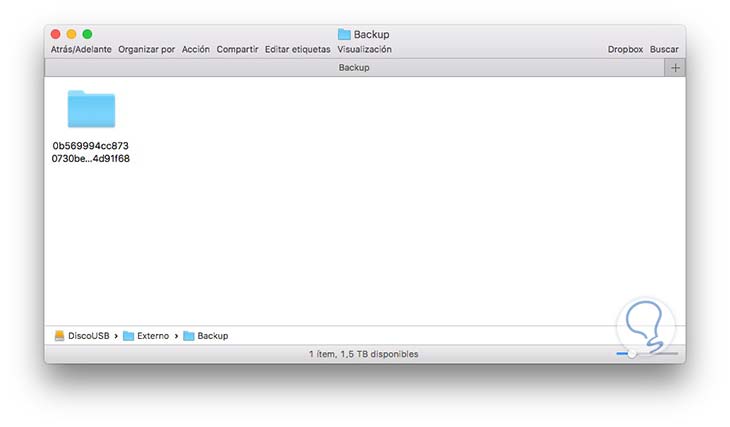 Lo primero que debemos hacer es conectar nuestro disco duro externo al Mac. A continuación debemos crear dentro una nueva carpeta para dedicársela a la copia de seguridad de iTunes. En este ejemplo vamos a crear una carpeta llamada “Externo” y una nueva carpeta dentro de Externo llamada “Backup”.