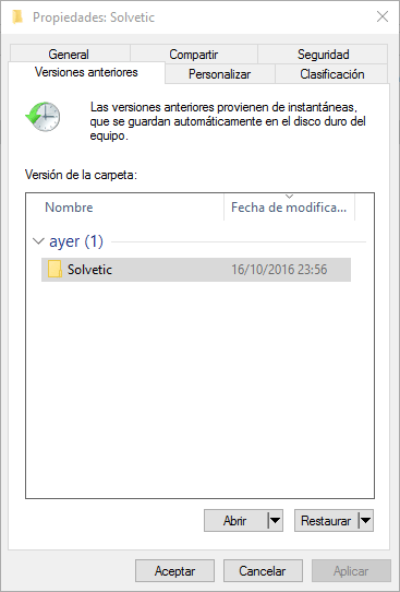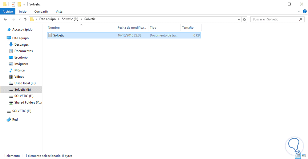 Pulsamos Aceptar para salir de las propiedades y si nos dirigimos a la carpeta Solvetic podremos ver nuevamente nuestro archivo allí restaurado de forma correcta.