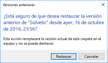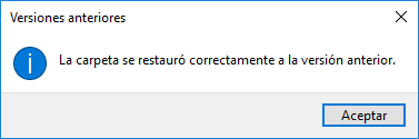 Saltará un aviso de confirmación de restauración. Pulsamos Restaurar y veremos un mensaje de confirmación.
