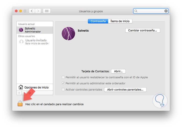 Allí es necesario que pulsemos en el ícono del candado ubicado en la parte inferior izquierda para poder realizar cualquier cambio en el sistema.