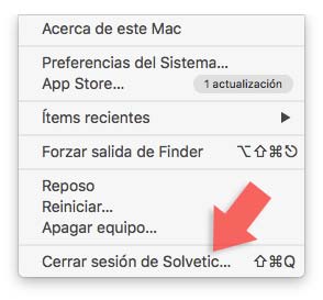 Podemos cerrar nuestra sesión pulsando el ícono de Apple y seleccionando la opción Cerrar sesión de..