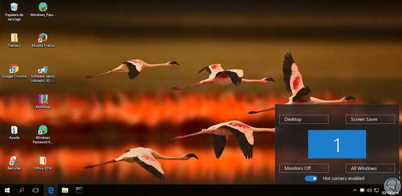 Para usar la herramienta basta con mover nuestro mouse a alguna de las esquinas para que la tarea definida sea ejecutada, por ejemplo, podemos desplegar el cursor hasta la esquina superior derecha para habilitar el protector de pantalla y veremos que de manera automática se activa.