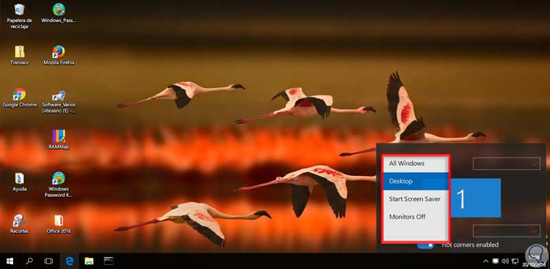 Al pulsar en el icono anterior veremos que se despliega lo siguiente. Es importante que aclaremos que esta herramienta aunque nos permite efectuar tareas en cada esquina de Windows 10 no tiene el alcance de las esquinas activas de Mac OS.