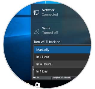 Allí pulsamos sobre el ícono de Wi-Fi y veremos que se despliega el estado de nuestra red y la respectiva opción de Turn Wi-Fi back on donde configuraremos el tiempo según la necesidad.
