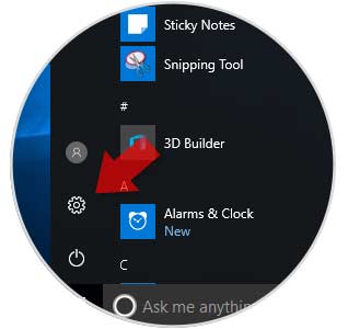 Accedemos desde el menú Inicio a la opción Configuración pulsando el ícono