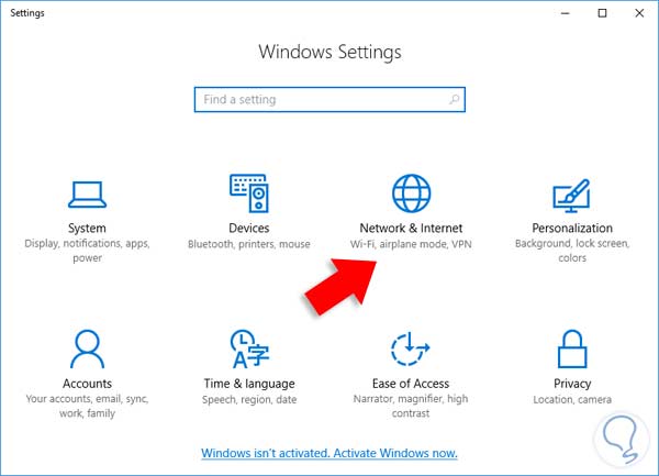 En la ventana desplegada seleccionamos la opción Redes e Internet o Network & Internet.