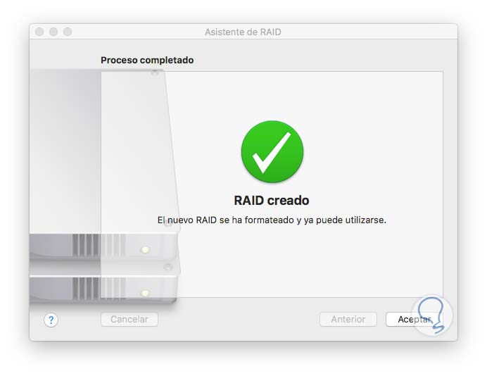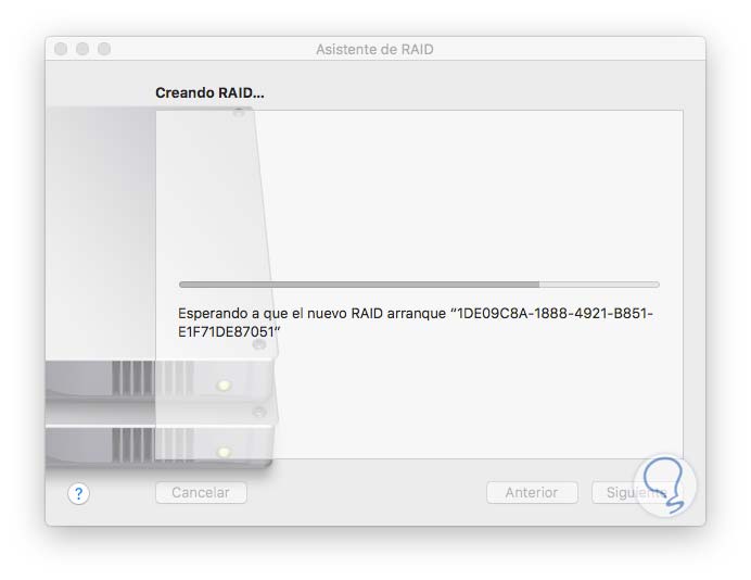 Al pulsar Crear iniciará el proceso de creación del grupo RAID definido.