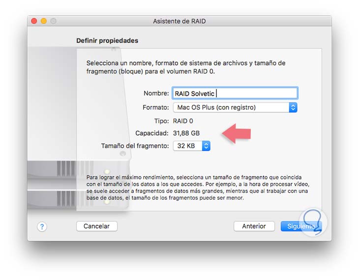 Pulsamos de nuevo Siguiente y a continuación podremos establecer un nombre a nuestro arreglo RAID y definir, si es necesario el tipo de formato y el tamaño del fragmento.