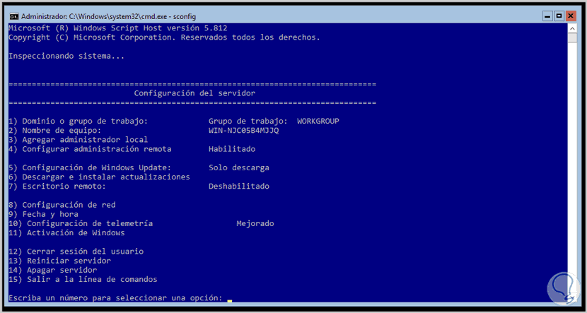Podemos usar el comando sconfig para visualizar la configuración del servidor.