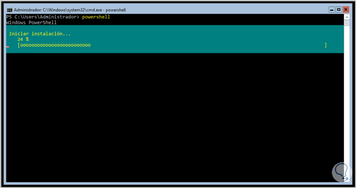 Podemos acceder a Windows PowerShell simplemente ingresando el término powershell y pulsando Enter. Desde allí podemos ejecutar los diversos cmdlets disponibles con PowerShell en Windows Server 2016.