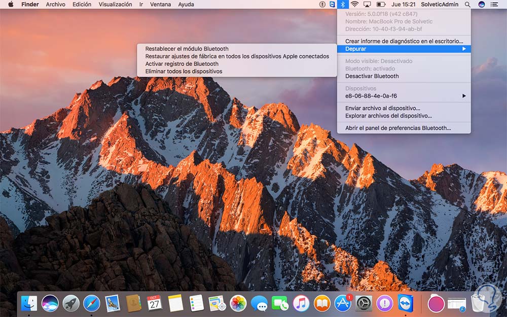 Esta opción restablecerá la configuración del Bluetooth en macOS Sierra.