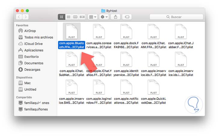 En la ventana desplegada buscamos nuevamente el archivo com,apple.Bluetooth