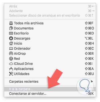Para esto accederemos al menú Ir a la carpeta desde el Finder usando alguno de los siguientes métodos: