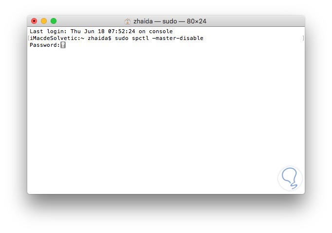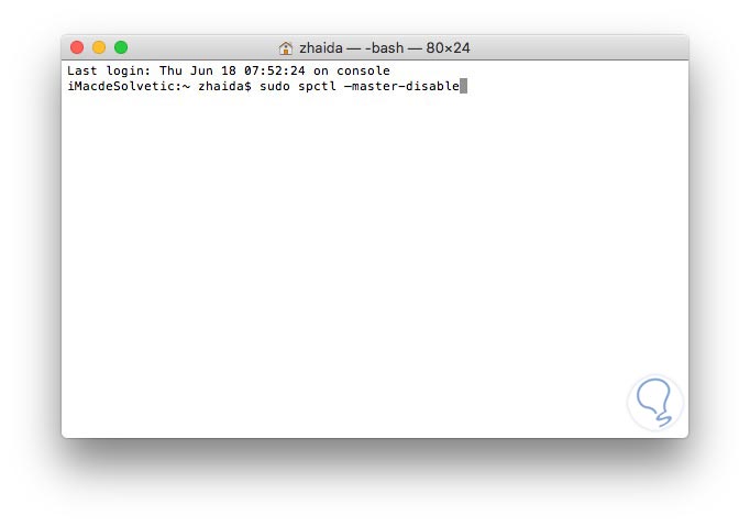 Para deshabilitar la opción de gatekeeper en Mac ingresaremos el siguiente comando desde la terminal: