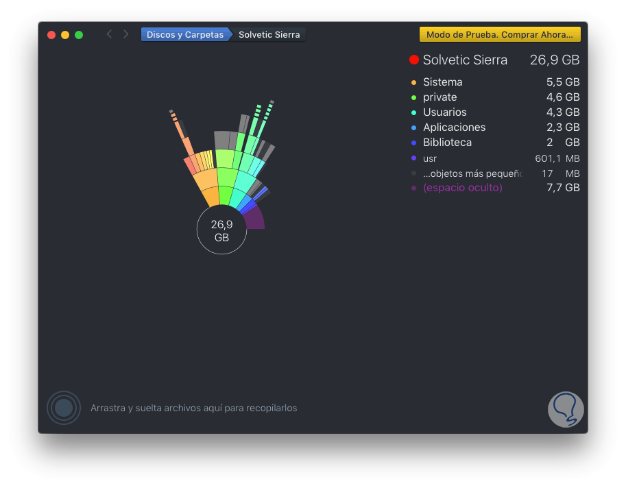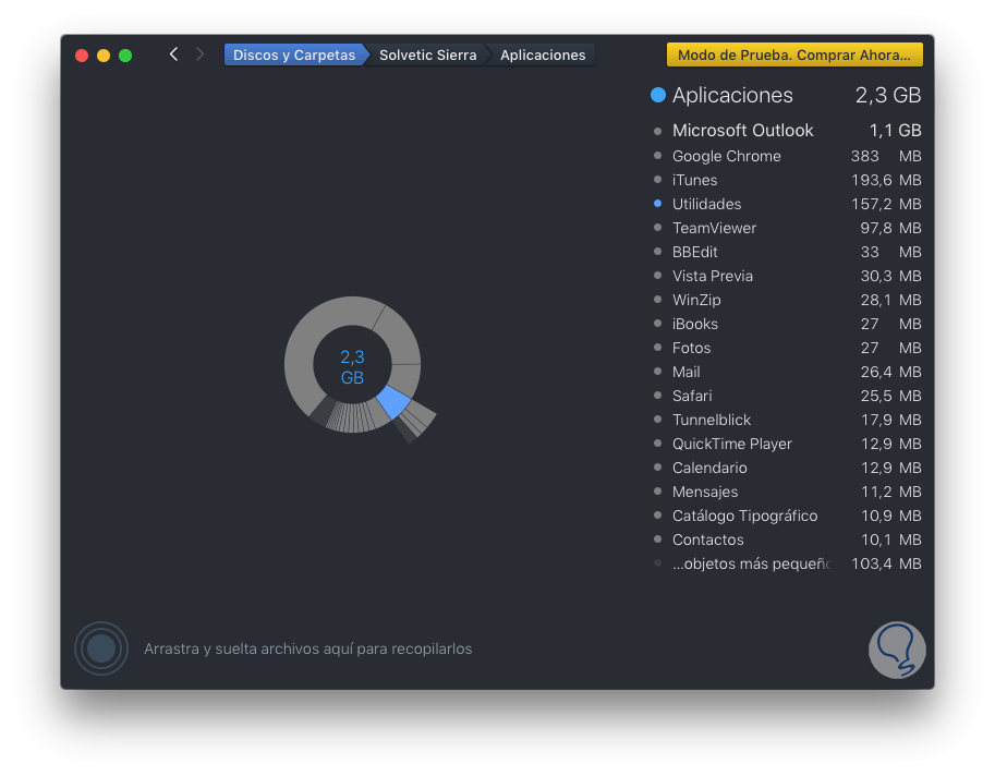 Una de estas herramientas es DaisyDisk la cual ofrece una versión de prueba que puede ser descargada desde el siguiente enlace: