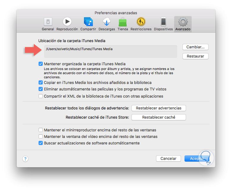 Modificar la ubicación donde se guardan elementos descargados, por ejemplo en iTunes podemos usar la opción "Avanzando" del menú "Preferencias" para definir una nueva ruta de alojamiento de los archivos descargados o en Safari podemos modificar la carpeta "Descargas" desde el menú "Preferencias > General"