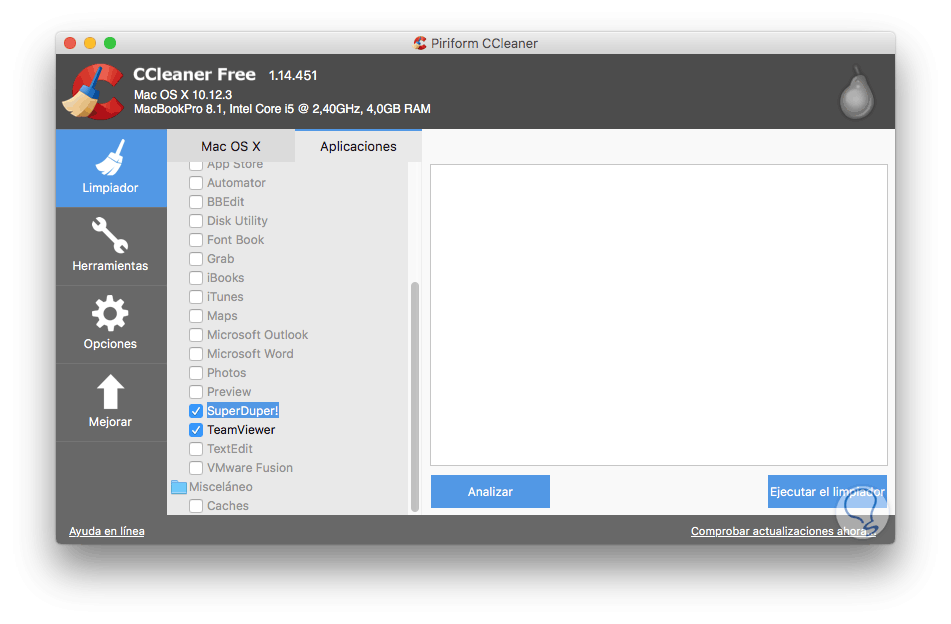 Otra de las grandes herramientas que serán de gran ayuda a la hora de liberar espacio en el disco duro es CCleaner, la cual podemos descargar gratuitamente para macOS Sierra en el siguiente enlace: