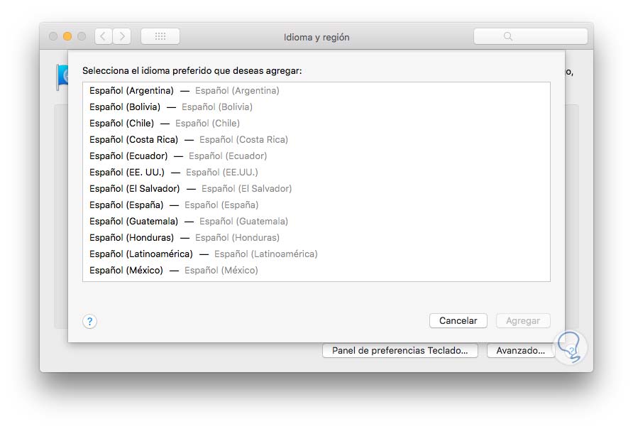 Preferencias del sistema > Idioma y región, y si pulsamos sobre el signo + veremos algunos de los idiomas disponibles: