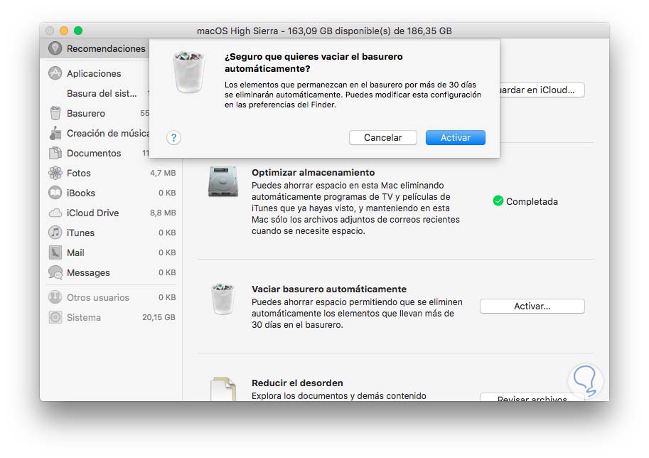 Esta función en macOS High Sierra nos permitirá eliminar de forma automática todos los elementos del basurero que llevan más de 30 días allí.