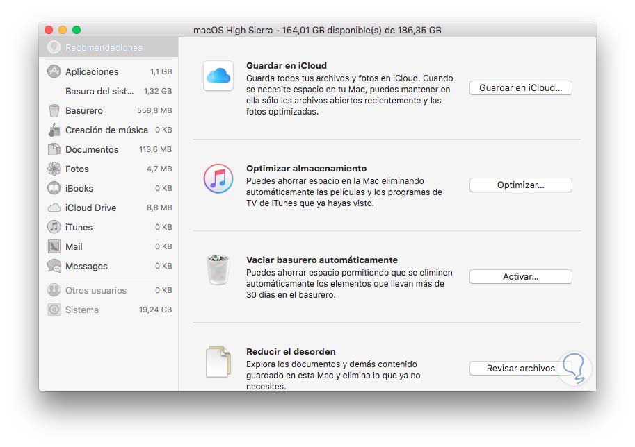 A continuación veremos una serie de mensajes que nos ayudarán a tener los mejores niveles de almacenamiento en macOS High Sierra, estos son: