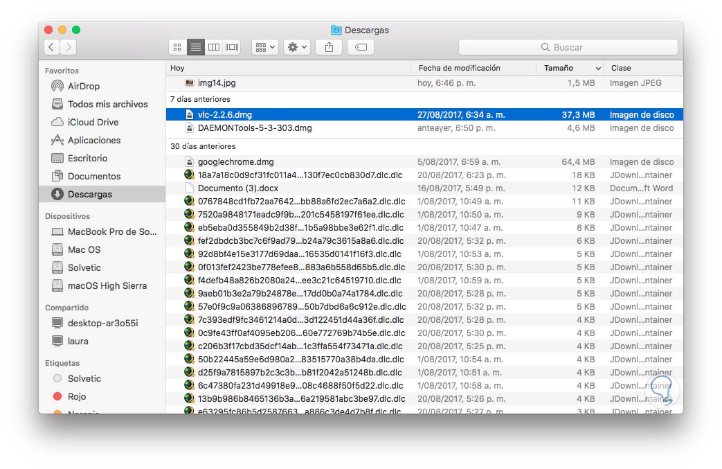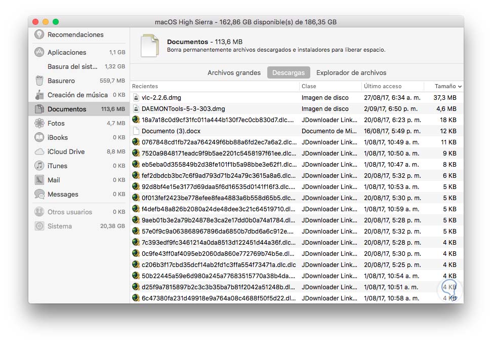 - Eliminar las descargas que hemos bajado es uno de los puntos críticos que afecta el espacio en macOS High Sierra ya que podemos contar con descargas de 1 o más gigas y ya no son necesarias.