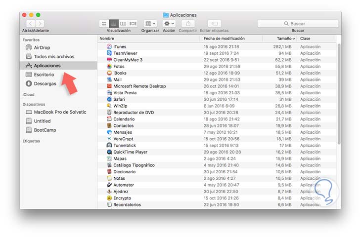Otra de las causas comunes que afecta el óptimo rendimiento de macOS Sierra es el tener instaladas aplicaciones que no usamos y que pueden trabajar en segundo plano consumiendo los recursos del equipo. Podemos visualizar que aplicaciones tenemos instaladas dirigiéndonos a la ruta:
